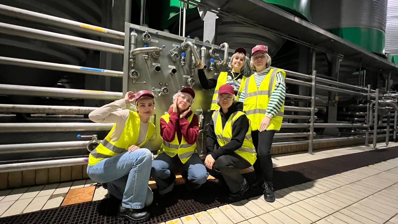 За два часа насыщенного тура коллеги узнали как выглядит сусло и хмель, как работает автоматика по сортировке готовой продукции, как выдуваются бутылки и перерабатывается вторсырье, и много чего ещё.