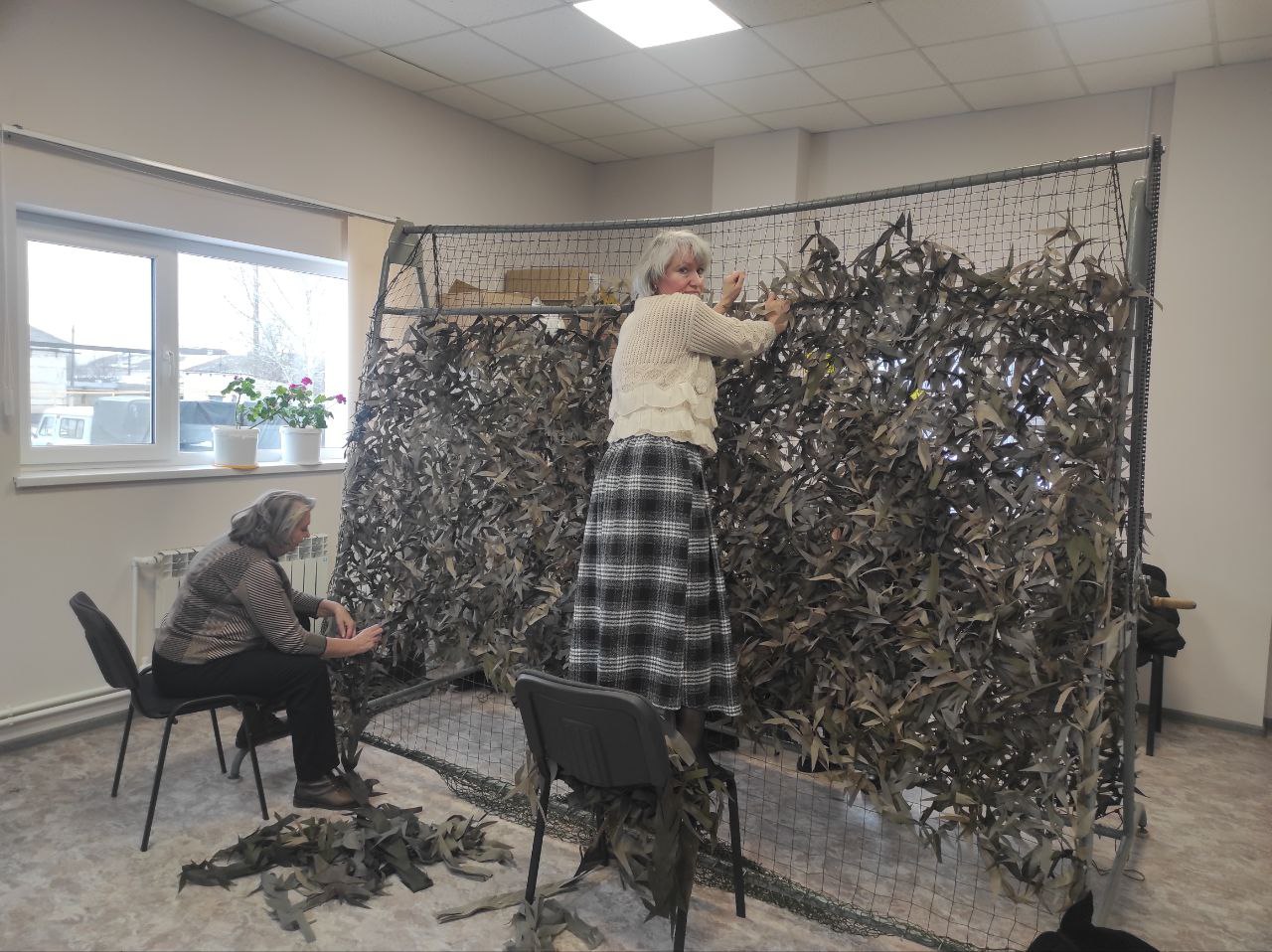 Ежедневно несколько часов своего свободного времени наши коллеги посвящают плетению маскировочных сетей для участников специальной военной операции.
